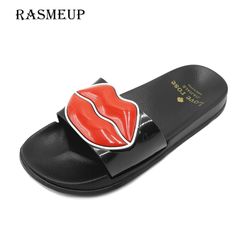 RASMEUP Women's Slippers 2018 Summer Fashion Lips Platform Women Beach Slides Soft Thick Soled Woma
