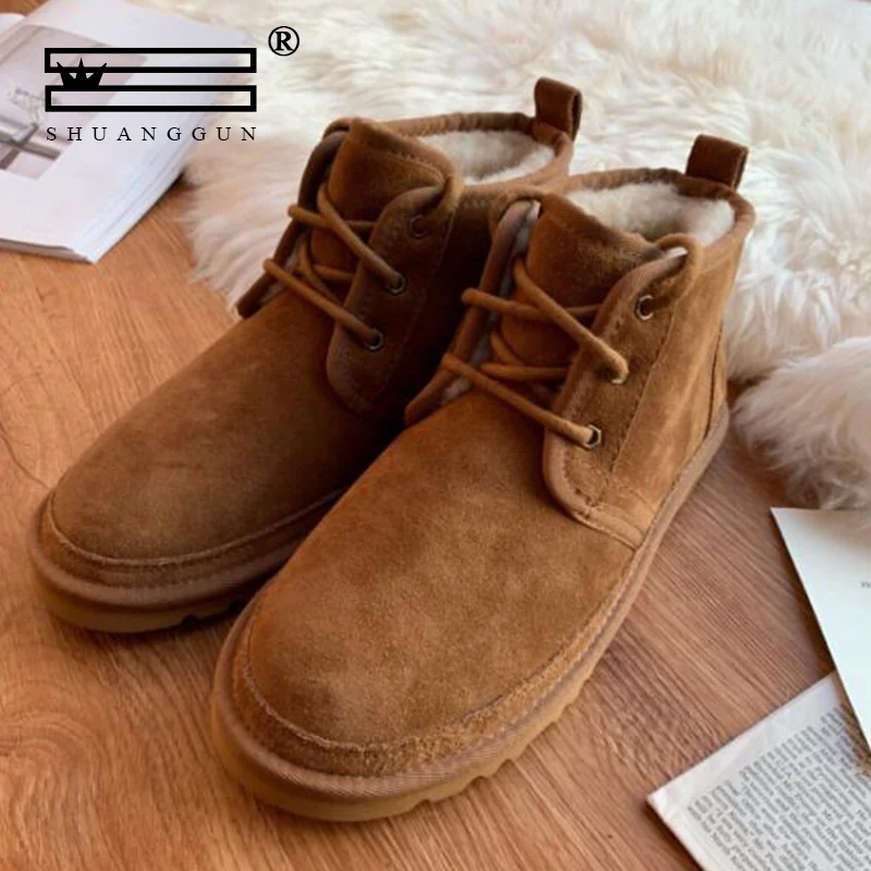 Australian Imported Brands Snow Boots For Men Lace-Up Winter Shoes Real Sheepskin Leather Nature Wo