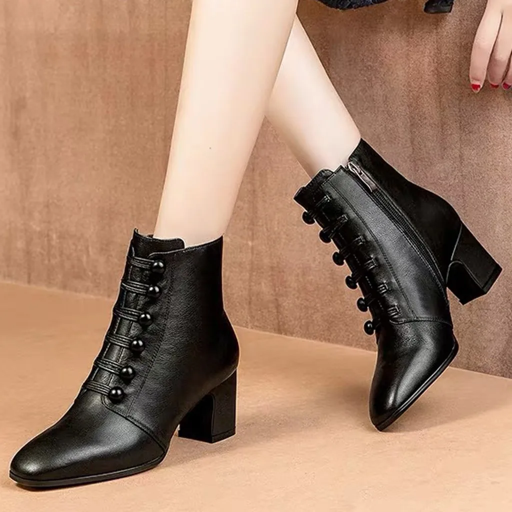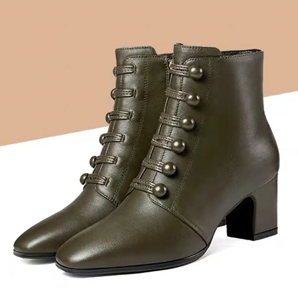 England Style Ankle Boots Women Leather Short Boot Button Spring Lady Elegant Evening Party High He