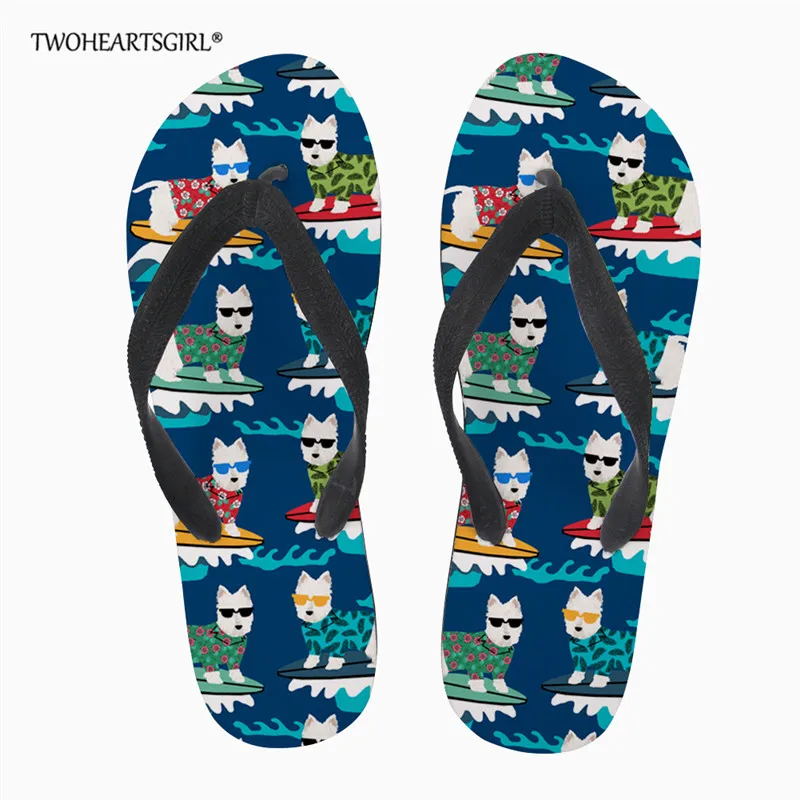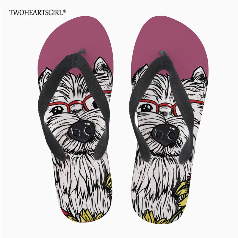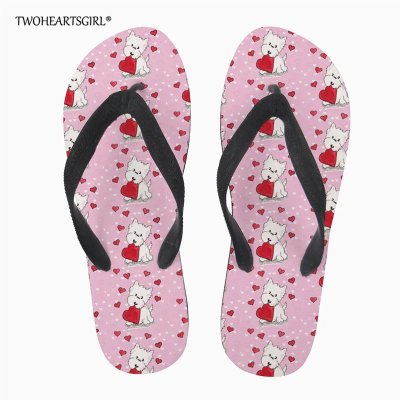 Twoheartsgirl Cute Westie Dog Summer Sandals Slipper Indoor Outside Flip-flops Beach Shoes New Fash